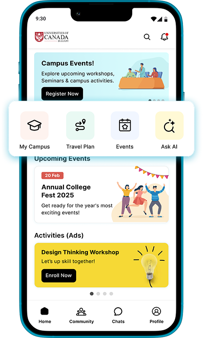 Access all campus tools in one place - from communities and events to messaging and profile management