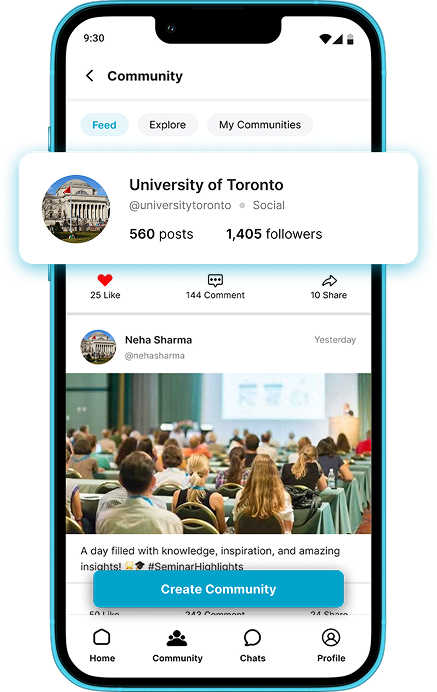 Explore features, build communities, and organize events – everything you need to create meaningful campus connections in one powerful platform